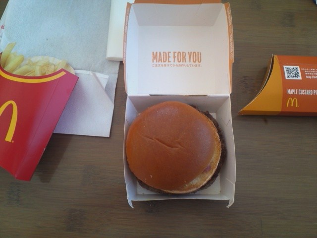 今回はケータイクーポンを使って、テキサスバーガーLセットが1つと、テキサスバーガーとメイプルカスタードパイがセットになっているのを購入。